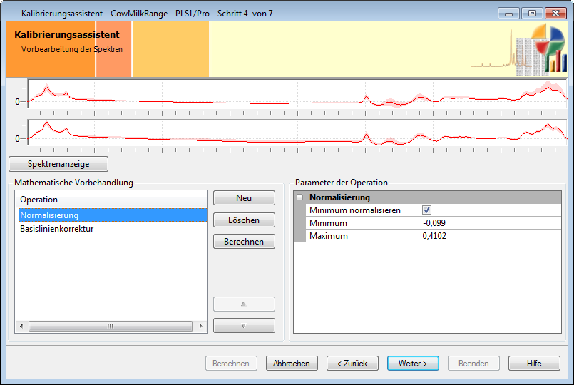 Kalibrierungsassistent - Schritt 4 - Mathematische Vorbehandlung