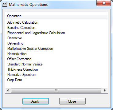 In manchen Fällen kann es von Vorteil sein, mit mathematisch gut angepassten Daten anstatt mit Rohdaten zu arbeiten. Dieser Schritt erlaubt die mathematische Vorbehandlung der Kalibrierungsdaten, um den Einfluß der signifikanten Spektrenbereich zu verbessern. Es kann sowohl eine einzelne, als auch eine Reihe von mathematischen Operationen angewendet werden um das Kalibrierungsmodell zu optimieren.
