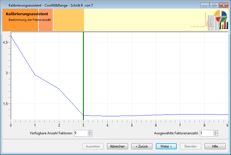 Mit Ausnahme des MLR-Modells ist die Fakoranalyse Teil aller Kalibrierungsmodelle. Bei ausgewählten MLR-Modell wird dieser Schritt übersprungen.