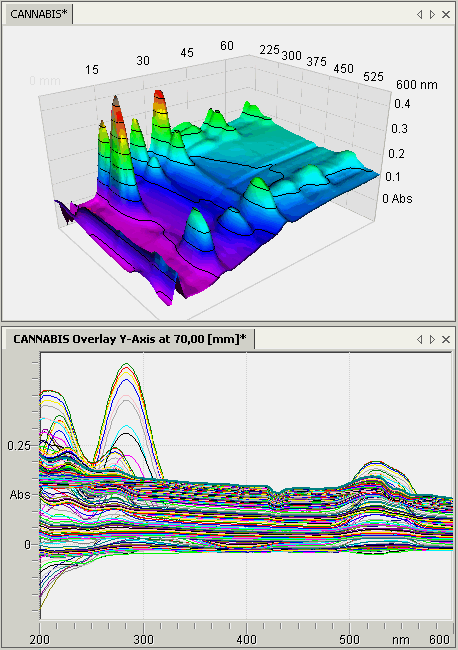 Besides the overlay functionality, this command has an additional effect. All 2D data of a 3D data object is merged into a new tab window. Thus they have been extracted all at once from the 3D object.