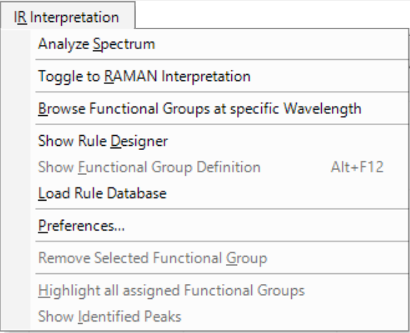 The menu name toggles from IR Interpretation to RAMAN Interpretation according to the actual analysis mode.