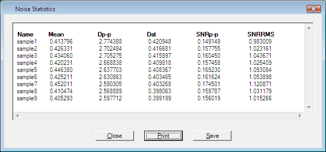 A new dialog window is opened, which contains a result report with all noise statistics: