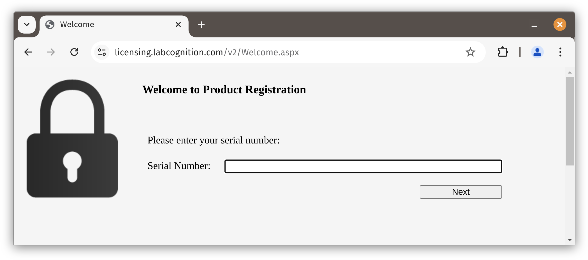 Open the Internet Explorer and type the following URL into the Address bar (or just follow the link below): https://licensing.labcognition.com/v2/Welcome.aspx