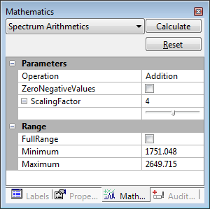 Enable or disable the Full Range checkbox, if you like to apply the arithmetic function just to a spectral region or the whole spectrum area.