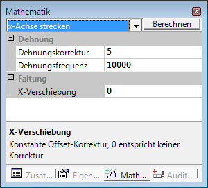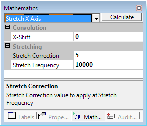 In the Mathematics tab, enter the desired parameters for x-Shift, stretch correction and frequency.